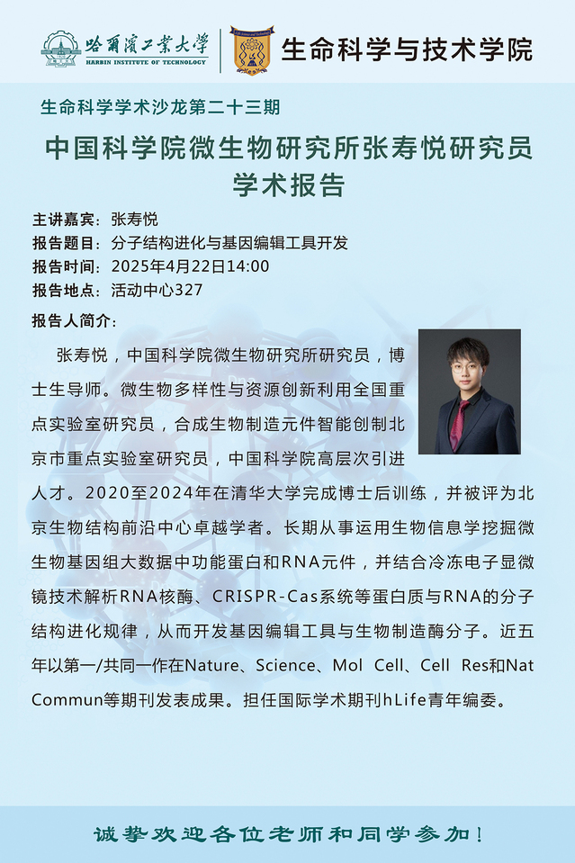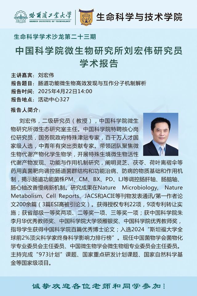 【生命科学学术沙龙第二十三期】中国科学院微生物研究所王奇慧研究员、刘宏伟研究员、张寿悦研究员学术报告通知