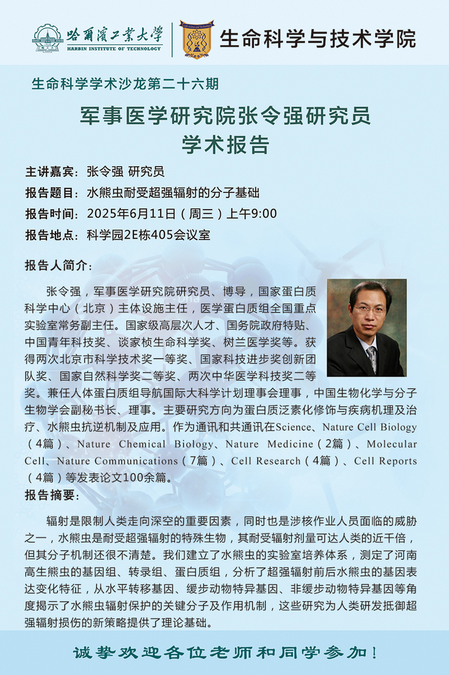 【生命科学学术沙龙第二十六期】军事医学研究院张令强研究员、唐丽研究员学术报告