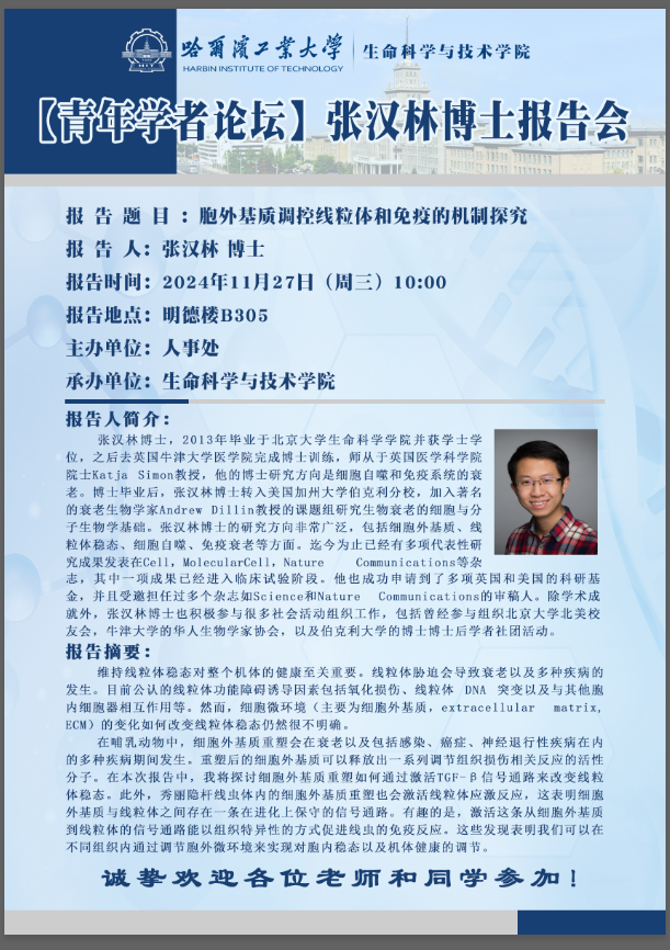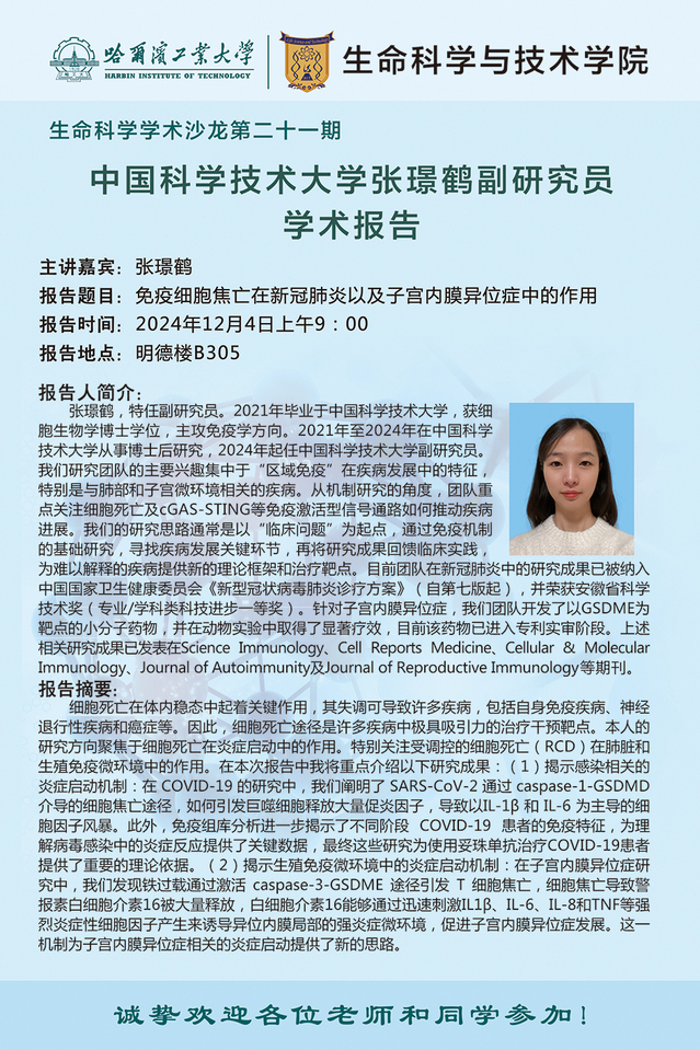 【生命科学学术沙龙第二十一期】中国科学技术大学张璟鹤副研究员学术报告通知