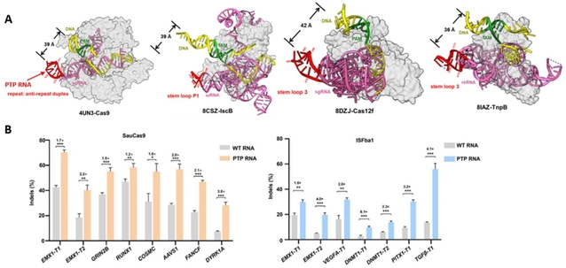 图2A:CRISPR和TnpB系统的PTP RNA